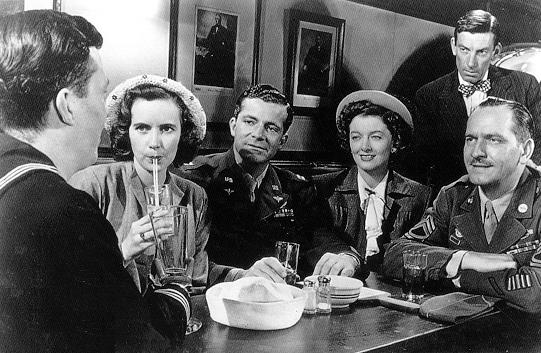 The film follows three returning servicemen who meet on the plane ride home to their mid-west home town and their differing experiences as they strive to return to civilian life. There’s Fred (Dana Andrews), who served as a captain and bombadier and returns to his wife that he married twenty days before he was shipped out to war and due to the tight job market is forced to return to his job at the local soda bar. Then there’s Homer (Harold Russell, an actual war veteran and double amputee) a petty officer who lost both his hands when his ship went down and can’t handle his childhood sweetheart or his family treating him differently or pitying him now he is the way he is. Finally there’s Al, an infantry platoon sergeant returning to his seemingly idyllic world with his apartment straight out of Home Living, doting wife and two now grown up children and receives an instant promotion at the bank, yet he too struggles with returning to ordinary life and quickly develops an unhealthy relationship with alcohol.